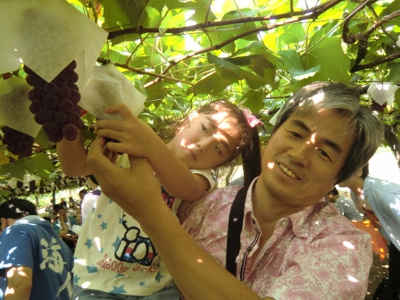・勝沼、ぶどう狩り、この日は気温がピーク、暑い夏でした。
