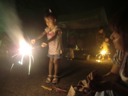 2012-7-30,31 相模湖リゾート、プレジャーフォレストで夏を楽しみます。2度目の訪問です。今回は迷路(からくり砦)を使ったスタンプラリーにはまりました。苦労の末、踏破しました。連日天気がよく、夜のキャンプファイヤーも楽しみました。